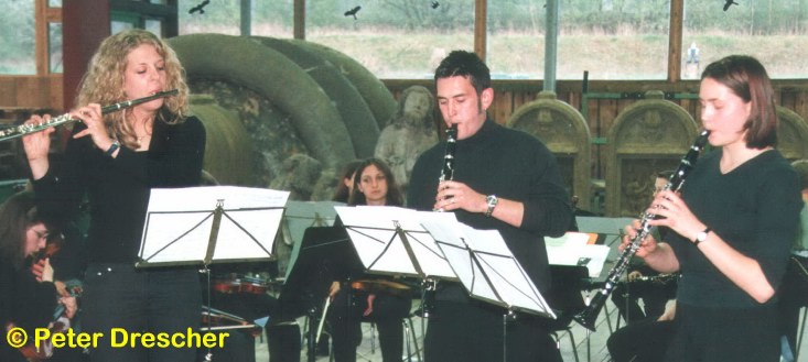 | Katharina Fink (11 b; Querflöte), Ludwig Jungbauer (KS II; Klarinette) und Ulrike Weinmann (KS I; Klarinette) überzeugten durch ihr flottes und elegantes Spiel bei Hooks Trio VI in F. |